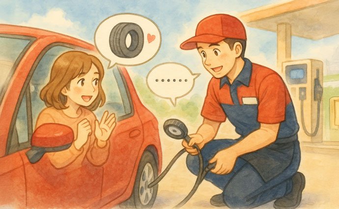 「今日はお出かけですか? そういえば最近、タイヤの空気圧はチェックされましたか?」